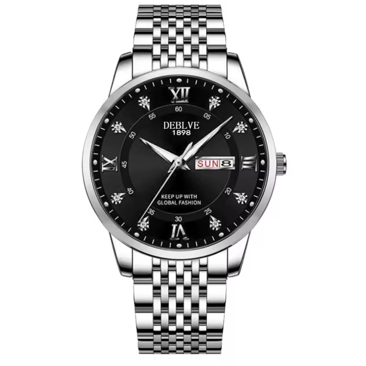 Elegancki srebrny zegarek z czarną tarczą — idealny na każdy dzień. Klasyczny design, uniwersalny styl i niezawodna jakość, która pasuje do każdej okazji.